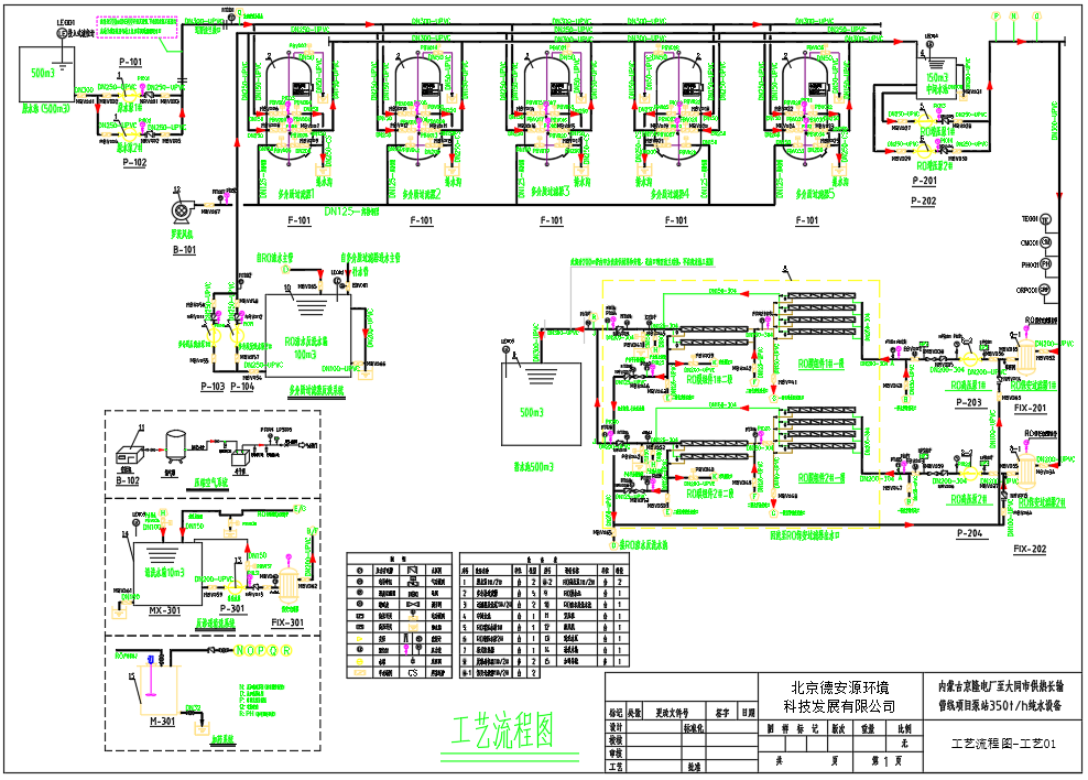 本工程反滲透水處理設(shè)備由2套系統(tǒng)構(gòu)成。單套產(chǎn)水能力175t/h,總產(chǎn)水量為350t/h。